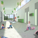 Descripción enviada por el equipo del proyecto. La oficina VAUMM Arkitektura ha sido finalista con la propuesta de concurso Guardería en Zaldibar. Este proyecto tiene la particularidad de incluir dos edificios, pero también dos vacíos, los dos patios de juego asociados. La planta responde a una idea sencilla de implantación en el solar basada sacar el máximo rendimiento a esta relación entre llenos y vacíos.
