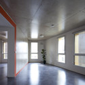 Uno de los objetivos de este proyecto era permitir que la luz natural y el aire fresco (en verano) estuvieran presentes en los espacios de circulaciones horizontales, y se logró gracias a las aberturas juiciosamente distribuidas. La vegetación plantada en las jardineras suspendidas pronto caerá en cascada.