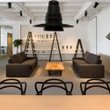 La cocina abierta es un lugar que reúne a los empleados. Una mesa grande y masiva es el elemento principal de este espacio, acompañada por las sillas Masters de Philippe Starck. La atmósfera de la fábrica se mantiene por lámparas de goma negras (Diesel para Foscarini). La sala de reuniones más pequeña, destinada a las reuniones internas, cuenta con una extraordinaria lámpara de techo hecha de cables.