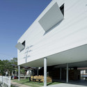 En primer lugar, el edificio flota en el aire para mantener el jardín existente. Este edificio flotante se divide en dos alas, dispuestas en el centro del jardín.