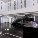 Descripción enviada por el equipo del proyecto. El nuevo complejo de oficinas del Grupo se colocó a lo largo del eje norte - sur de la parcela. Se compone de dos volúmenes separados que conectan entre sí a lo largo del eje de este-oeste, con el volumen del Este para estar en retirada. Debido a la pendiente de la gráfica, un nivel del suelo artificial en -0.10 en comparación a cero ha sido creado, mientras que el nivel de la placa de tierra está en ± 0,00 con respecto a este nivel. La entrada a los dos volúmenes del edificio es a través de una entrada central en su unión.