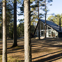 Como su predecesor, el Lodge No 2 está inspirado en las antiguas carpas del camping. Es también una construcción de madera, que se conecta con la fuerte tradición local, pero con un techo llamado faltak, que tradicionalmente se encuentran en la isla báltica de Gotland. El exterior de madera, sutil y homogéneo, subordina al bosque de pinos circundante. Aunque pequeño en tamaño, el interior es amplio, con una doble altura en la sala de estar, dos habitaciones y un altillo, y una cocina abierta.