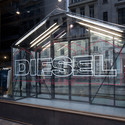 Descripción enviada por el equipo del proyecto. Nombrado por Diesel UK para colaborar en una nueva tienda pop-up de 4 meses en Regent Street de Londrs, St, Brinkworth y Wilson Brothers respondieron capturando la esencia del retail pop-up: una instalación rápida y efectiva, sencilla y económica con gran impacto y un concepto fuerte.