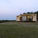 Descripción enviada por el equipo del proyecto. La casa está diseñada como una ampliación para una posible casa existente de la misma serie que ya están en el terreno, para ser un sauna, casa de invitados o un cobertizo. O puede ser un desarrollo independiente - una casa de verano con sauna , una casa de huéspedes, una casa de playa . Tiene dos versiones de diseño funcional - uno con sauna grande y otra con dormitorio principal en lugar del sauna.