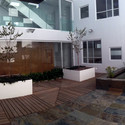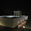Éste es el principio rector del concepto de esta casa, y que mejor que ver hacia un patio que es particular; no pretendemos inventar, sino redescubrir al viejo y conocido patio tapatío (típico de las casas antiguas de Guadalajara), ese patio de juego y de encuentro con el verde y el azul, y el blanco como lienzo para las sombras siempre en movimiento. Ver hacia adentro… con solo correr los ventanales del área social va de ser una casa íntima y acogedora a un gran espacio de encuentro y convivencia que además se conecta con el de la azotea. Las fachadas al exterior son intencionalmente sencillas, predominando los sólidos en simples formas geométricas con pequeños vanos que corresponden a estudiadas vistas desde el interior cuidando la intimidad de los usuarios y controlando al mismo tiempo las ganancias térmicas.  Las fachadas interiores que dan al patio están cuidadosamente planeadas y ordenadas geométricamente entre las 6…sí, son seis…aún el muro liso está pensado para ser una permanente pantalla de proyección de video. La fachada horizontal superior tiene huecos de distintas dimensiones pensados para permitir el ingreso de luz, aire y lluvia, convirtiéndose además en un perfecto regulador térmico cuyo atinado funcionamiento atestiguan los peces del estanque y  las plantas interiores al florecer. Durante el día la luz y las sombras que danzan en el patio  hacen que un espacio simple sea siempre cambiante y diferente e interesante. En la noche todo se invierte como en un negativo fotográfico, los huecos del patio se convierten en faros que iluminan la oscuridad del cielo y saludan a los vecinos con un juego geométrico de luces en medio de la nada.
