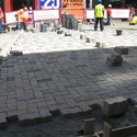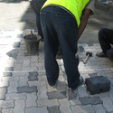 Para facilidad y eficiencia de colocación se divide la superficie en tramos de circa 500 metros mediante brocales en concreto que permiten confinar los adoquines e ir avanzando en secciones dando paso a peatones en las porciones ya terminadas.