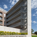 Descripción enviada por el equipo del proyecto. El edificio de 115 viviendas de protección oficial está situado en la zona del acceso norte de Girona, en un sector cercano al “Puig d'en Roca”. Promovido por el Patronat benéfico de la Santa Creu de la Selva, está formado por viviendas de tipología variada, dirigido para mayores de 65 años con alquiler de bajo coste. El proyecto se ha desenvuelto pensando sobretodo en los espacios colectivos de sociabilización. A la vez, se han elaborado soluciones tecnológicas y constructivas en el ámbito de la sostenibilidad y el ahorro energético.