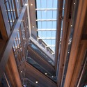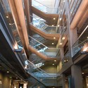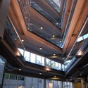 En su interior, los recorridos se desarrollan en torno a un gran vacío central, el cual tiene 5 pisos de altura. Esta altura sumada a una gran iluminación natural, estructuran el interior de este proyecto.