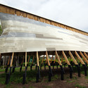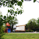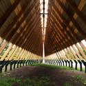 Descripción enviada por el equipo del proyecto. El Arca de Noé después de encallar en el monte Ararat, se convirtió quizás en el primer "Folly", disparate arquitectónico, una fantasía imponente, pero a la vez una estructura sin propósito: un barco sin agua a su alrededor, una casa sin habitantes, una masa descomunal de una tipología conflictiva. Elegida entre más de 170 participantes, SuralArk es una interpretación vernácula Estadounidense de la original. Hecha de estructura de madera de 2”x6” y revestimientos de vinyl siding, los materiales de SuralArk tienen sus orígenes en la periferia urbana, sorprendentemente cerca de Nueva York (casualmente, hay una casa revestida en vinyl siding justo al otro lado de la calle de la entrada del Parque Sócrates) y sus preceptos formales son los de un barco abandonado volcado, lejos de la orilla. Si se trataba de una casa en Levittown en camino de convertirse en un barco, o en una nueva e híbrida casa flotante en construcción en la orilla del East River, para prevenir una próxima inundación por huracán, no es del todo claro. El visitante es invitado a ingresar bajo el alero revestido, para contemplar el horizonte actual del Parque de Esculturas y Nueva York, el pasado, y tal vez, las próximas grandes inundaciones.