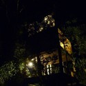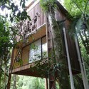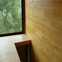 El terreno, con una leve inclinación hacia el camino de acceso, hacia donde se vuelca la vista del dormitorio en el último piso, favorece la esbeltez del edificio y lo eleva alrededor de 15 metros sobre la cota de llegada. Por otra parte, las tres caras restantes, correspondientes una a la escalera y los accesos, otra al baño en la planta superior y otra que abre las vistas del estar-comedor con un balcón, miran a la selva cercana y sumen al edificio en la espesura de su cerrada vegetación.
