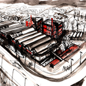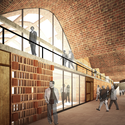 Una sucesión de patios son la transición entre el programa de investigación/capacitación y el parque lineal propuestos, bajo una gran cubierta abovedada. El programa de incubación y desarrollo de empresas se aísla en módulos ubicados sobre el borde del barrio contiguo. Ambos contienen una calle interna – hall principal del edificio. Este distribuidor lineal de doble altura conecta longitudinalmente patios, áreas del programa generales y sectores específicos.