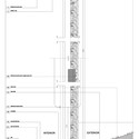 Cada uno de los volúmenes está construido de diferente manera y con materiales distintos, uno en bloques de piedra (tomados de una rivera vecina) y el otro de madera de pino (tomada de un bosque ecológicamente plantado). En su interior, cinco cajas metálicas entramadas entre sí agrupan el programa creando un conjunto permeable, permitiendo el paso del aire, en el cual se puede apreciar tanto la piedra como la madera.