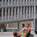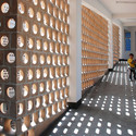 El programa de hospital se reconfigura de su forma convencional. El diseño comienza con una estrategia simple para proporcionar una rampa de acceso continua a todas las plantas. Una rampa ancha permite asientos y mejora la circulación. Esto también crea un gran espacio de patio central abierto para el uso público. En la planta baja, el patio ofrece espacios adicionales para estar y sirve como un área de espera al aire libre. Los materiales consisten tanto de ladrillos tradicionales reciclados, que forman la fachada exterior, y bloques de hormigón diseñados, que flanquean el pasillo espiral interior. Aunque desde la distancia aparecen como el tipo común, estos bloques diseñados se fabrican en un molde de látex flexible. El patio resultante presenta una calidad suave y sin problemas al cambio, proyectando sombras variables durante todo el día.
