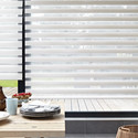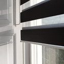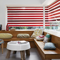 Esta cortina se compone de una doble tela de franjas opacas y traslúcidas, que permite jugar con distintos niveles de translucidez y privacidad a medida que la cortina se abre o se cierra. El sistema de accionamiento es sencillo, a través de una cadenilla plástica o metálica, y existen diferentes tipos según el ancho de las franjas y su color. Más detalles aquí.