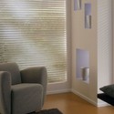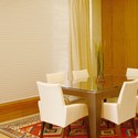 Se compone de láminas de tela horizontales suspendidas entre dos velos traslúcidos que gradúan la entrada de la luz. El sistema permite girar las láminas transformando la intensa luz del día en un resplandor luminoso, bloqueando hasta un 99% de los rayos UV. Más detalles aquí.