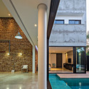 Los materiales dialogan entre ellos entregando vida y armonía a un espacio dinámico: concreto estampado, ladrillo de demolición, instalaciones a la vista y amplios ventanales transforman el espacio en una casa de arte, una nueva manera de vivir.