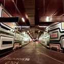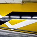 La arquitecta comenta: "El aparcamiento tiene un sistema especial de señalética para la ocupación de espacios, señalización disponible por medio de sensores de luz. Piezas de video arte muestran partes del cuerpo humano proyectándose en las paredes de los extremos de los carriles y en otra zona se encuentran fotografías de autor con secuencias anónimas de población local mostrándose afecto".
