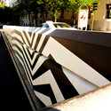Apostando por una gráfica simple y por los colores fuertes, la arquitecta tomó prestadas algunas frases del poema Libertad de Paul Éluard, las que quedaron plasmadas radical y expresivamente entre los automóviles.