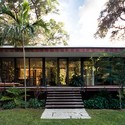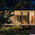 Esta casa de 140 m2, basada en la tipología americana de un pabellón de cristal, Dog Trot, y los principios modernistas de Florida, ofrece un refugio tropical en el centro de Miami. Elevado 5' de la tierra, la casa incluye 100 pies de vidrio ininterrumpida - 50 pies que abarcan la duración de las fachadas delantera y trasera, con cuatro juegos de puertas correderas de cristal que permiten que la casa sea totalmente abierta cuando se desee. La casa incluye 800 pies cuadrados de espacio al aire libre, con porches delantero y trasero y puertas correderas a lo largo de la parte delantera para una mayor privacidad y protección contra los elementos. Estos detalles, y la posición de la casa, que está en el centro de una gran sitio de 330 pies de largo, permiten a la casa fusionarse a la perfección con el denso y exuberante paisaje nativo del sitio.