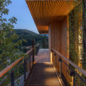 Cada cabaña ofrece estacionamientos, integrados suavemente en el paisaje existente debajo de los edificios. La idea era ocultar todos los componenes técnicos y M&E de los edificios dentro del paisaje y elevar los edificios por encima del terreno, dando una experiencia flotante para los residentes.