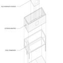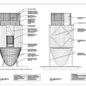 En un extremo de la estructura, las piezas de revestimiento permiten un pequeño balcón para mirar hacia la casa principal; en el extremo opuesto, la fachada se abre a vistas directas hacia el valle del río Hudson. El descenso de vuelta a la tierra es a través de un par de columnas estructurales convertidas en barras de bomberos. La estructura de acero se fabricó fuera del sitio y se trajo en camiones donde se ensamblo con una grúa.