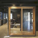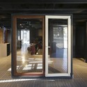 El espacio otorga una atmósfera de contraste entre lo moderno y lo convencional, lo industrial y lo cálido, a través de los muros de hormigón armado a la vista y la madera; logrando así un equilibrio armonioso.