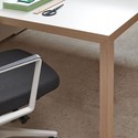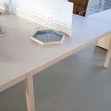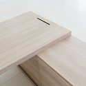 Por su parte, la mesa Prisma, diseñada por Sylvain Carlet e Isern Serra cuenta con un entronque de sus patas, realizado de forma piramidal, que simula estar producido en una sola pieza de madera, a pesar de ser materiales completamente diferentes; melamina en su cubierta y aluminio en sus patas. Y sin embargo, visualmente, todo parece un mismo bloque de madera maciza.