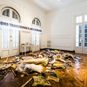Instalación interactiva donde el público puede interactuar con herramientas para destruir arte.