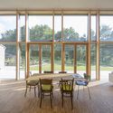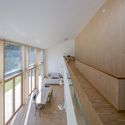 Descripción enviada por el equipo del proyecto. La casa está situada en un paisaje de morrena y colinas al este de Munich en el límite de un pueblo. Al sur y al oeste, la vista se abre al exterior a través de granjas dispersas, el pueblo se sitúa al noreste de la propiedad. Decidimos crear un área de acceso semi-pública, que limita con la casa y el garaje. La zona del jardín es por un lado oculto a la calle, pero al mismo tiempo se abre hacia la campiña al sur y al oeste. La casa responde de la misma forma esta situación orientando los 60m² con una gran abertura de fachada hacia el sur-oeste. Se entra a la casa a través de un nicho en la fachada, del cual la vista ya cae a través de la casa hacia el jardín y el sector privado.