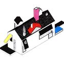 Experimentaciones sobre la tipología de la vivienda; la casa en su arquetipo más trivial se descompone, explota y se reorganiza a través de las tensiones creadas por las superficies y volúmenes de colores que se cruzan, cortan y rompen el conjunto.