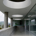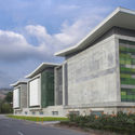 La estructura en concreto reforzado, expuesta a la vista constituye un componente de la arquitectura del edificio, dos patios abiertos lineales receptores de luz natural, establecen la incorporación del entorno con el interior; a su vez la edificación se beneficia de una orientación oriente –occidente, donde se exponen las fachadas largas en sentido norte – sur, disposición óptima para proteger el edificio de la asolación directa y aprovechar la luz natural, reduciendo significativamente la dependencia de la iluminación artificial. Las fachadas están protegidas por una combinación de persianas micro perforadas a manera de piel envolvente, que protege el edificio de los rayos de sol directos, y permite un sistema de ventilación natural de gran impacto, eliminando así sistemas de ventilación mecánica en la totalidad de los laboratorios.