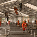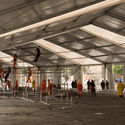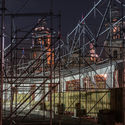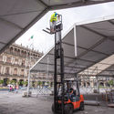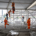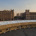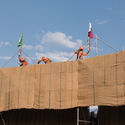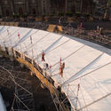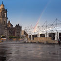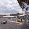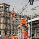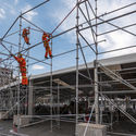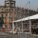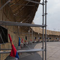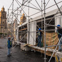 Durante su desafiante realización por las condiciones programáticas del lugar, el fotógrafo de arquitectura, Jaime Navarro, ha documentado y compartido con nosotros el registro día a día de la construcción de esta importante obra efímera que se inserta en gran parte del Zócalo Capitalino. En las imágenes se puede apreciar como, de forma rápida, se va materializando el pabellón gracias a la elección de su estructura, a base de andamios, y de recubrimientos naturales, hechos de costales de yute. Se denota, dentro del uso de estos materiales "cotidianos", un valor artesanal que se relaciona con la intención de vincular la cultura mexicana con la arquitectura de este proyecto cultural, que ha sido logrado también por la dirección de obra de Factor Eficiencia.