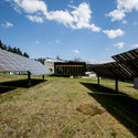 Al moverse fuera del acervo arquitectónico, el cubo tiene una dirección clara, que no sólo es legible desde aberturas delgadas en las fachadas laterales, pero especialmente en la sala de conferencias que está situada en el extremo del cubo con una fachada totalmente acristalada. Se crea una vista panorámica sobre 10.000 paneles fotovoltaicos instalados - Una mirada hacia el futuro de la producción de energía.