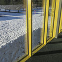 Para acentuar el color amarillo, se combinaron sólo con elementos de metal negros en la fachada. En contraste con la fachada oscura, el blanco y gris dominan el diseño de interiores, y de acuerdo con el esquema de color amarillo, ciertos elementos se puede notar en el detalle.