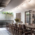 Descripción enviada por el equipo del proyecto. La visión general era crear un espacio con un diseño que rodea la cocina nórdica a la doble atmósfera de ciudad y al jardín - jardinería urbana. La idea era crear un espacio vivo y orgánico, como una fiesta en el jardín.