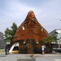 Esta estructura metálica masiva al revés, ubicada en la entrada del patio del museo, estimula la curiosidad y se convierte en una invitación para visitar el proyecto. La curva de la superficie delantera de la nave puede llevar a la gente al museo, ya que se abre hacia su entrada principal.