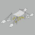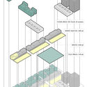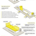 - Módulo de Sombra, es omnipresente, cumple un rol cultural-climático, en respuesta al ardiente sol santiagueño y a la idiosincrasia de su gente y sus modos de habitar. El carácter escindido del proyecto busca insertar adecuadamente la coexistencia de programas en su entorno inmediato, combinando usos diversos como factor intensificador de la vida barrial-urbana, pretendiendo garantizar el uso continuo (24hs.) del sector.