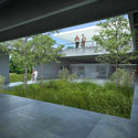 Proyectamos la planta baja libre totalmente atravesable, desde la lógica espacial y estructuradora de espacios ajardinados, portando permeabilidad y consiguiendo un gradiente entre lo público y privado. Decidimos recuperar los m2 cedidos al público en PB, proyectando un piano nobile en el primer piso que permite la expansión a una gran terraza verde. Este basamento se conforma de studios profesionales y oficinas corporativas. La mixtura programática del edificio da sustento a toda la actividad de la planta baja.