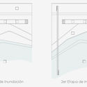El proyecto surge como una posible respuesta a esta problemática. Un edificio paralelo al río ubicado sobre la cota máxima de inundación delimita junto a éste el sector del territorio que se encuentra en constante transformación. Se presenta como una infraestructura pesada y opaca, como si de una ruina de hormigón se tratara. Plantea, desde su interior, una manera de vincularse al paisaje que prescinde de la presencia constante e ininterrumpida del mismo, buscando una vinculación diferente, no sólo visual, sino una percepción que requiera de todos los sentidos.