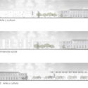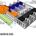 En primer lugar, la incorporación de la función universitaria como promotora de dinámicas de renovación del entorno histórico, a través de un programa que contempla un mix funcional de actividades diversas: residencias estudiantiles; laboratorios; salas de estudio; gimnasio y piscina, entre otros servicios. En segundo lugar, el protagonismo del espacio público como agente socializador y generador de pertenencia, a través de la conceptualización de una planta baja urbana clave para la integración con el entramado de espacios públicos existentes.