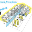 Como estrategia de conjunto, se generó una segunda apertura hacia el corazón de manzana, convirtiéndolo en una gran plaza pública. Con la intensión de generar un espacio público memorable, se recuperó la riqueza espacial interior que nos brindaban los arcos para convertirlos en protagonistas del lenguaje de fachada, el telón de fondo de todas las actividades sociales. Al insertar el concepto de FabLab en el contexto local detectamos dos problemáticas: el desconocimiento que aún se tiene sobre ellos y la falta de una estructura que sostenga la continuidad de los prototipos hasta que lleguen a comercializarse. Para lograr completar el proceso de producción, resultó necesaria la elaboración de un programa de arquitectura novedoso que contemplara tres usuarios: Neófito, Maker y Emprendedor.