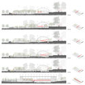 Nuestro objetivo es entender el rol del espacio abierto público en relación a la vivienda, dimensiones y jerarquías de sus espacios, continuidades visuales, flexibilidad residencial y espacios de uso colectivo. Nuestra propuesta se ubica en la gran manzana central del masterplan y se conforma por una masa edilicia en torno a un patio. Todas las fugas de la edificación reconocen el silo como elemento de valor patrimonial, como primer referente de implantación. El proyecto toma como referencia la altura máxima de la ciudad consolidada y desciende en su aproximación al parque Scalabrini Ortiz para mejores visual y orientaciones, conectando dos partes de ciudad actualmente desconectada a través un espacio público central.