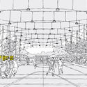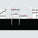 Fundamentos Arquitectónicos. El proyecto se plantea como un “edificio abierto” en el cual se dan constantemente distintas variabilidades programáticas y fricciones de uso. El espacio principal representa la calle en su función de catalizador de encuentros y flujos de movimiento, delimitado por una sucesión de postes que conforman un límite virtual que dialoga con la escala territorial. Una serie de containers a los costados albergan los soportes necesarios de las distintas actividades del centro que se desarrollan en el espacio principal, y que resuelven la escala barrial del contexto, generando un impacto mínimo en el suelo. La autonomía de los containers en cuanto a su sistema de cerramiento, generan una reflexión sobre la relación entre lo público y lo privado, despojando al edificio de límites definidos y permitiendo un continuo flujo de movimiento entre la ciudad y el territorio.