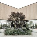 Creamos una oficina de 125 metros cuadrados en dos niveles para un vivero, la cual puede regocijarse de naturaleza y volver a cultivar 52 metros cúbicos de madera.