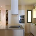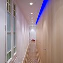El eje del proyecto es el pasillo central que conecta la zona privada con la pública, ubicadas cada una en una zona opuesta del piso. Se mantiene la estructura del pasillo original, mientras que las dependencias adyacentes se convierten en una caja de madera de arce que contiene las estancias de servicio de la casa, formando un volumen compacto, que se rompe cada vez al entrar en su interior. Las tonalidades claras de la madera de arce se combinan con los tonos cálidos del suelo, dejándole todo el protagonismo. (foto _27H8153e).
