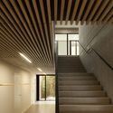 Con el fin de minimizar el impacto y dejar espacio para que el medio ambiente natural pueda prosperar una vez más, los elementos claves del edificio tuvieron que ser construidos bajo tierra y hacerse más compactos. La forma es similar a un conjunto de elementos programáticos que se entrelazan de manera oportuna para simultáneamente crear una proximidad (funcionalidad y ergonomía) y minimizar la huella de la estructura. Este principio da como resultado un edificio con dos fachadas que se encuentran parcial o completamente bajo tierra, y dos amplias fachadas que contienen todas las funciones. Esto se resume a través de la estructura opaca del gimnasio, que es una figura emblemática en la parte delantera del complejo.