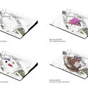 Por la misma complejidad de la zona esto implicó proponer un programa específico y amplio debido a las diferentes condicionantes que el lugar nos fue indicando. Se propone: un parque y corredor urbano a nivel de calle, en la parte subterránea se propone comercio, un hostal, cines con fast-food, un supermercado y estacionamiento. El lugar de intervención involucra al túnel de la ciencia y otros importantes flujos que corren por la zona, por lo cual fue un determinante para establecer un programa “ancla” el cual fuera lo suficientemente interesante para generar una atracción hacia la parte más baja del proyecto. En este caso el programa “ancla” fue el supermercado que debido a un estudio de mercado es necesario en la zona.