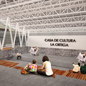 Este proyecto buscar ser la solución para la recuperación del espacio público de la comunidad, para fortalecer la economía local mediante el mercado, fomentar la cultura local mediante la casa de cultura y promover la cohesión social junto con la plaza pública; solo así, a través de esta configuración, podría lograrse la descentralización de la comunidad, generado integración urbana y social entre los sectores norte y sur”. Arquitectónicamente la Casa de cultura rescata los elementos como el hilo, que se traduce en fachadas y el silo que predomina en el sitio se refleja con la cubierta de acero principal.