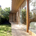 En el interior, las funciones se reorganizaron agregando un área abierta más generosa, creada con techos de doble altura. La madera utilizada para la ampliación y cubierta se continuó como paneles de pared y armarios - reorganizando las funciones internas.