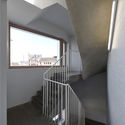 Como la mayoría de los proyectos en Bruselas, el edificio tuvo que enfrentarse a un contexto fascinante pero difícil. Para hacer frente a la parcela pequeña, irregular, ruidosa y principalmente orientada hacia el norte, el edificio utiliza características arquitectónicas clave. Desarrolla apartamentos largos doblados alrededor de un patio abierto al sur y una escalera compleja que se entrelaza con escaleras individuales, permitiendo movimientos volumétricos internos y vistas kilométricas al paisaje circundante. Las articulaciones de los planos, intrincadas como encaje, y la sección progresiva, pasando de medios pisos a dúplex invertidos, proporcionan a todos los apartamentos con luz de 4 orientaciones, espacios al aire libre, vistas impresionantes y numerosas experiencias espaciales.